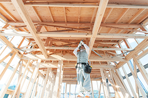 木造住宅において、柱や梁、棟木を組み立てながら、建物のカタチを建設する工事です。